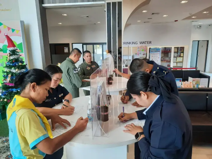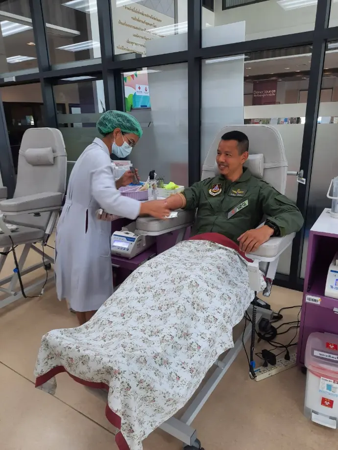 ชัยวัฒน์ แจ่มดวง ผู้อำนวยการศูนย์การสงครามทางอากาศ พร้อมด้วยข้าราชการ พนักงานราชการ พร้อมใจกันร่วมบริจาคโลหิต ในกิจกรรม "ศกอ.ทำดีด้วยหัวใจ ร่วมบริจาคโลหิต"